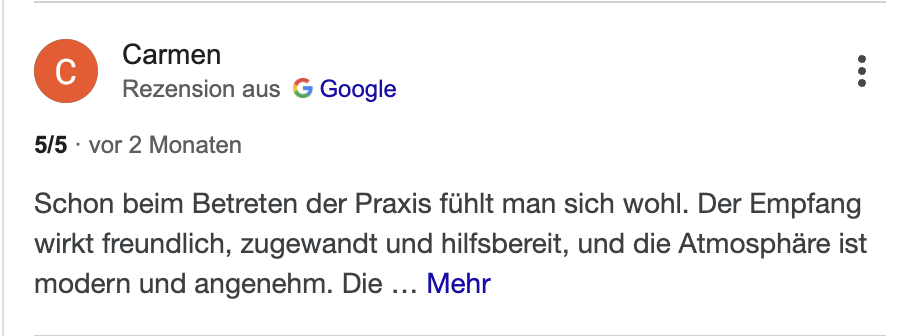 Ich bin sehr zufrieden. Ich bin schon lange in der Praxis und ich bin mit Dr. Hoshi (dem Nachfolger von Dr.Zimmer) sehr zufrieden. Auch meine Zahnreinigung wurde zu meiner vollsten Zufriedenheit erledigt.